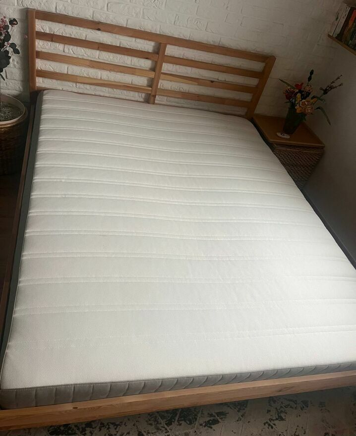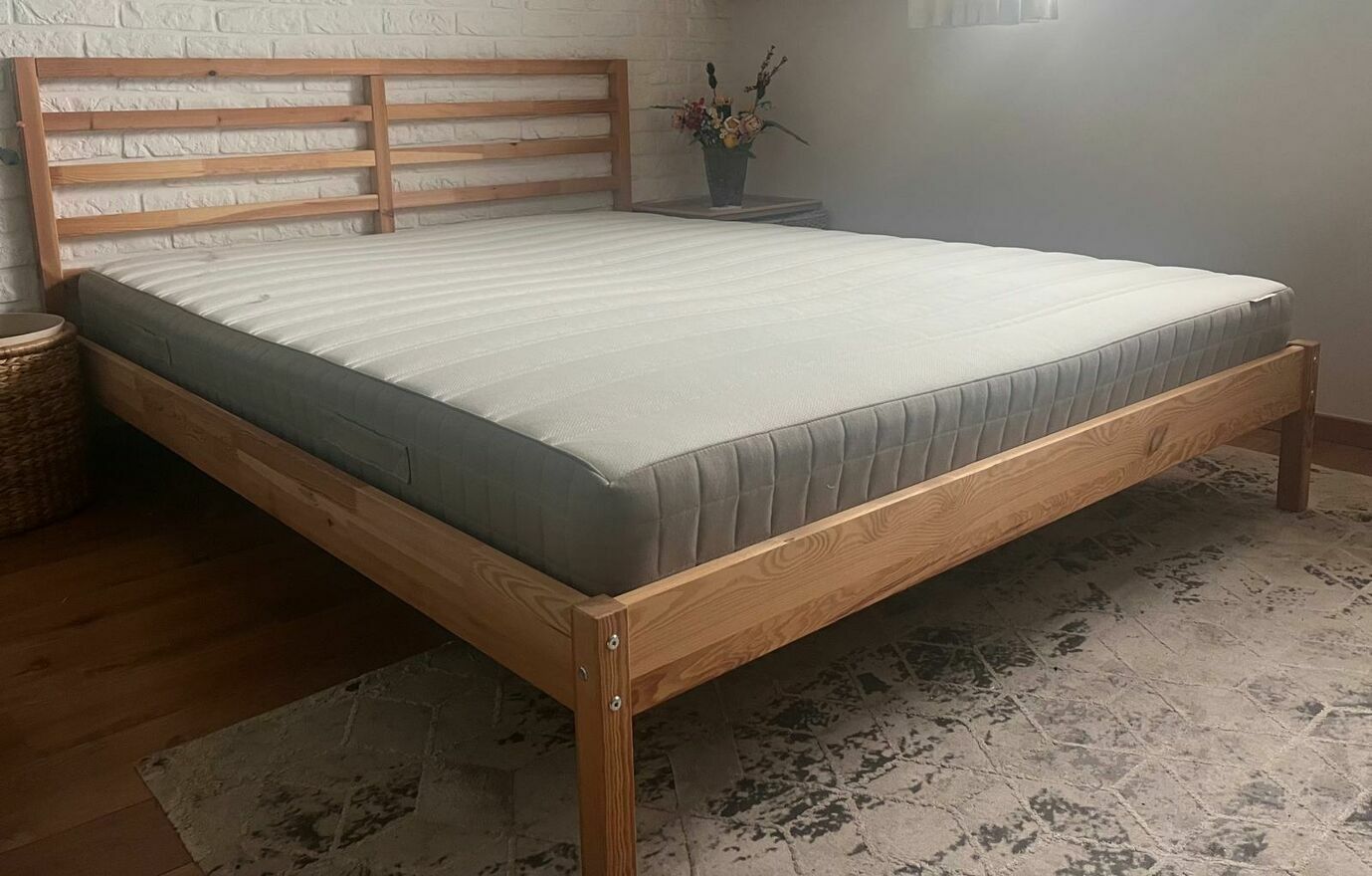 Oferuję na sprzedaż:Łóżko TARVA rama, sosnaLuröy, 160x200 cm - IKEA oraz materac marki Hamarvic.